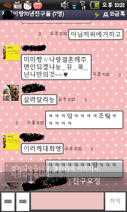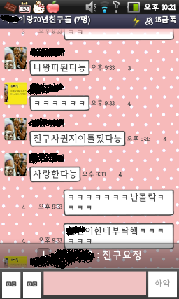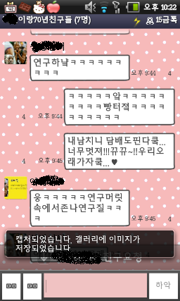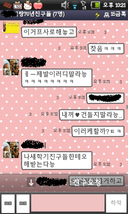 그냥 애들이끼리 카톡을 주고 받다가 너무 시무시무한 글쓴이와 그렇고 그런사이인 친구들(이라고해봤자 같이한건 두명바께 음슴)과 카톡한게 너무 웃겨서 그냥 추억거리 삼고자 글을 올리게됫었음ㅋㅋㅋㅋㅋㅋㅋㅋㅋㅋㅋㅋㅋㅋㅋㅋㅋㅋㅋㅋㅋㅋㅋㅋㅋㅋㅋㅋ