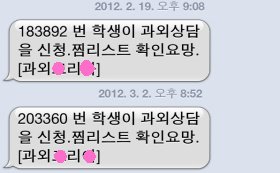 어떤 학생이 나를 찜했다고 문자가 옴