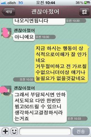 1시간에 50만원을 준다는 미친 소리를 하길래 씹고 바로 캡쳐를 했는데