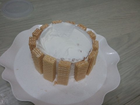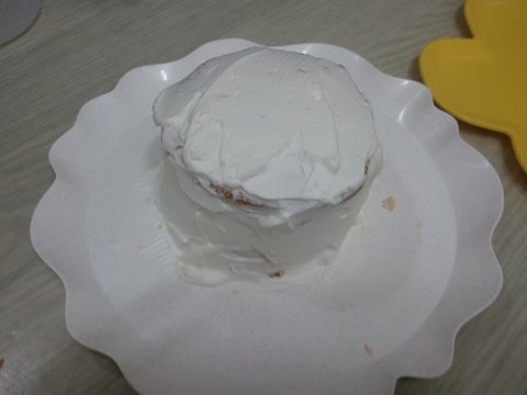 위에 빵을 덮고 생크림을 열심히 발랐음 ㅋ.ㅋ 근데 상태가안좋아보임