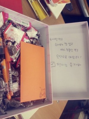 주황색 편지지와 펜을 준비해서 갖다줬음
