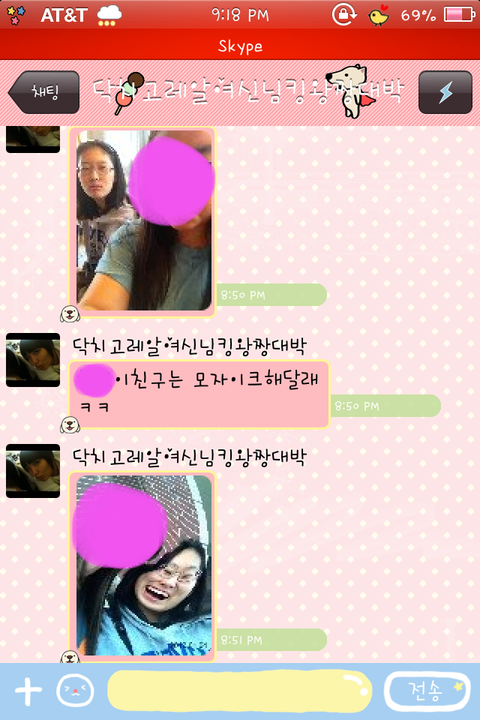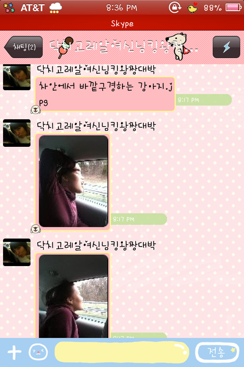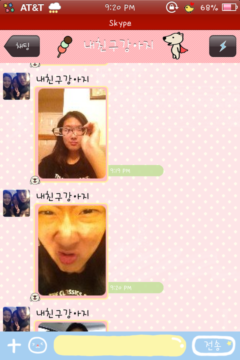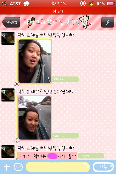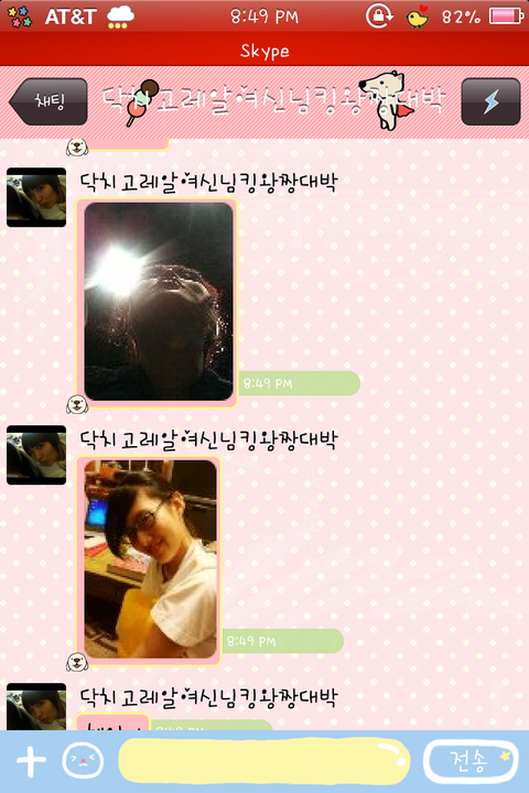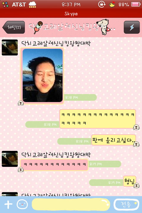 친구한테 시켜서 나한테 보내는거마져 모잘랐나본지 자기스스로 나한테 톡으로 자기 엽사를 보냄