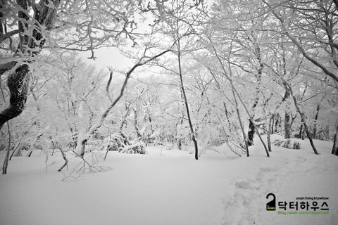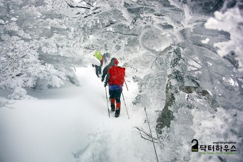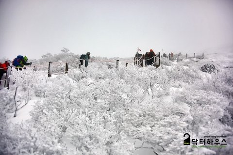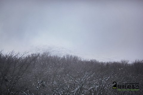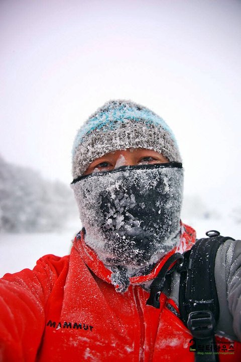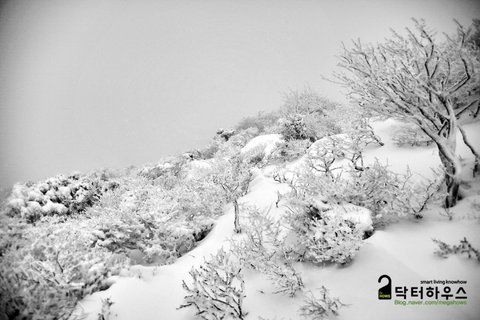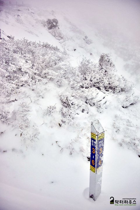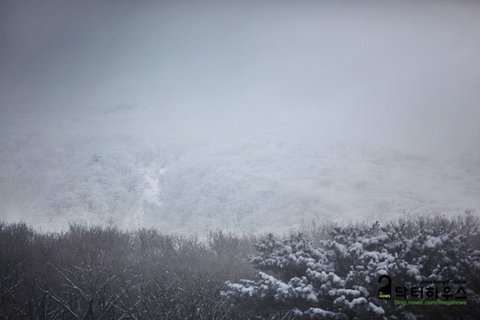 옷깃을 여미고 몸을 웅크리며 걸음을 옮겨도 눈조차 제대로 뜰 수 없어 한 걸음 내딛기도 쉽지 않았죠. 혹여나 한라산에서 동사라도 할까봐 저기 보이는 앞사람 등에 시선을 얹고 힘든 걸음을 옮기며 따라 붙었습니다.