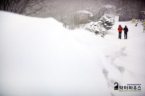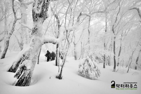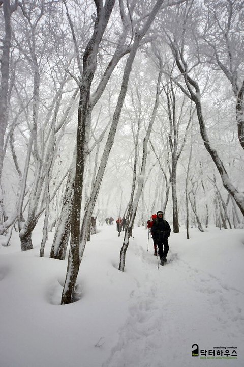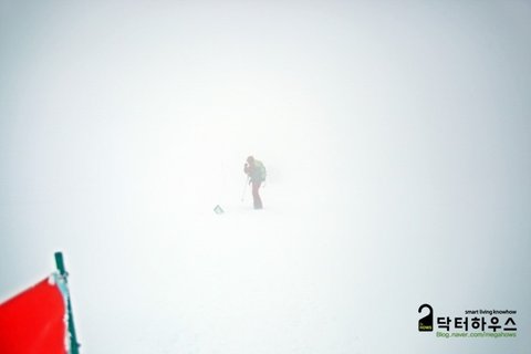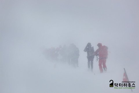 사진 한 장 찍겠다고 잠시 멈췄다간 지척에 있던 행렬이 눈앞에서 사라지고 사방이 백색으로 물들어 버렸습니다.