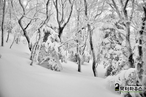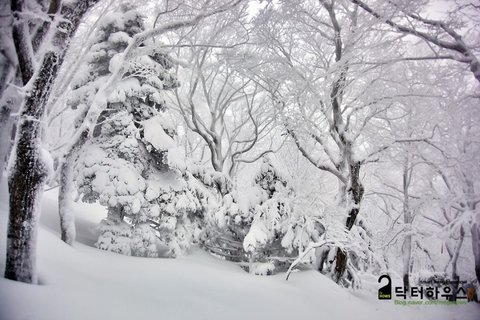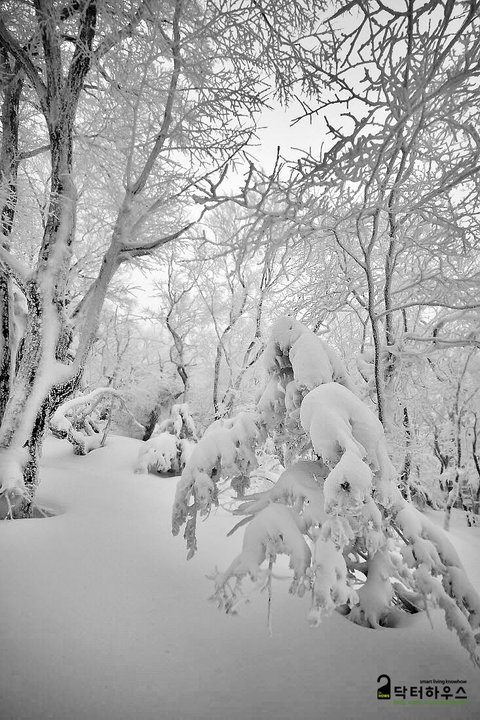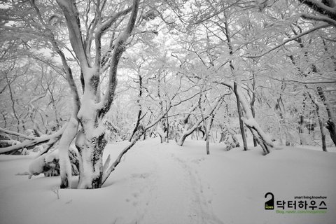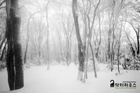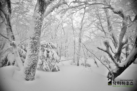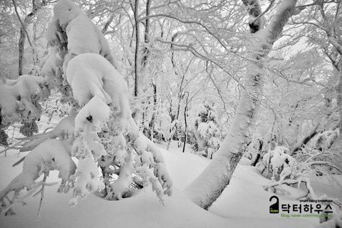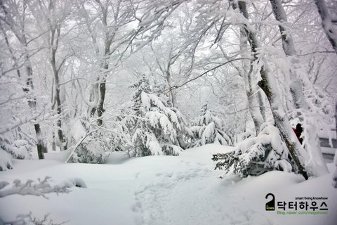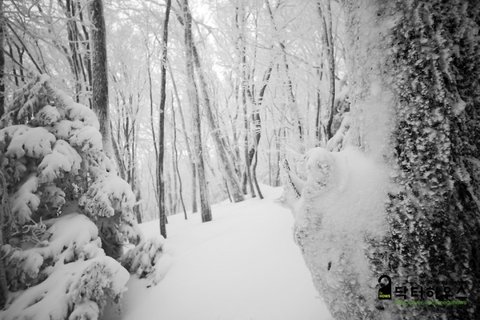 숲으로 접어들자 눈보라가 거치면서 또 다시 순백의 동화나라로 바뀌었습니다.