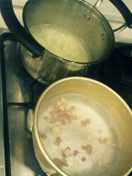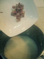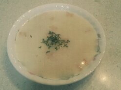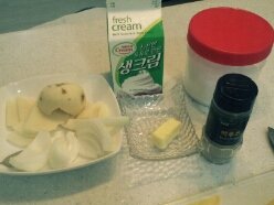재료는 생크림, 감자. 양파. 파, 버터, 소금, 흰후추, 월계수잎1장