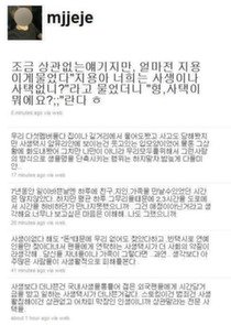 모바일배려(매니져형한테 연락왔는데..매니져형들집앞에 벌써와서 기다리고 있다네..3대가.. 택시안에 사생들은 이 트위터보면서 웃고 있겠지? 자신들이 주인공이니까 빨리 밖에 나가서 사진한장만 찍어오시라고 부탁드려야겠어..ㅎ)