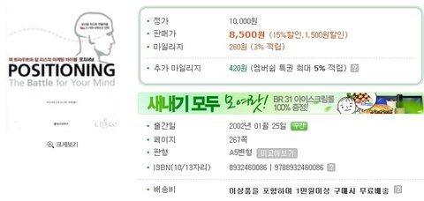 리브로에서 포지셔닝이란 책을 구입했어요~