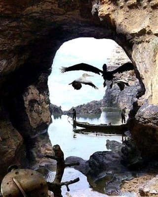 배를 탄 사람들과 새?