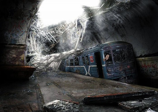 실제 사진을 포토샵과 3DMax로 가공해 세계 종말 후의 모습으로 바꾼거에요.
