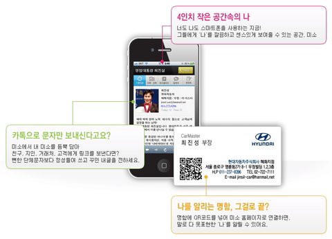 그러면 그 다음은 무엇일까? "개인용 모바일 홈페이지"가 될것이다. 물론 이 개인용 모바일홈페이지는 싸이이월드와 같은 개인용 플랫폼으로 성장할 가능성이 많다. 가장 관심을 많이 가질만한 곳은 명함을 많이 사용하는 영업직군, 컨설팅직군, 파워블로거, 기자, 교수, 취업준비생일 것이며 본인의 PR을 원하는 모든 사람들은 이 모바일홈페이지가 절대적으로 필요할 것이다.