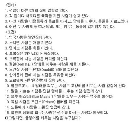 결국 파란집에 말을 키우고 블렌드 담배를 피우는 집은 덴마크 였던것OㅁO