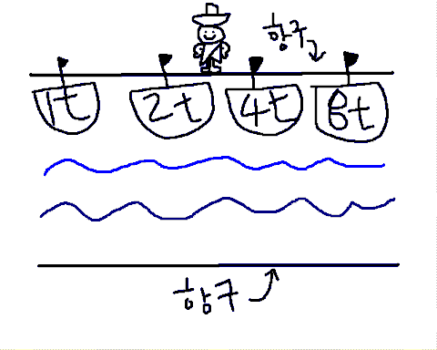 이런식으로 배를 모두옮겼을때 시간이