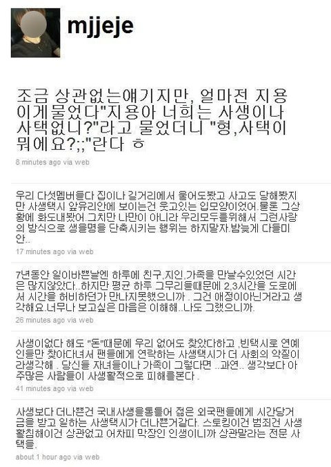 타가수중에도 심각한 가수 있을지 모르나 이렇게 심각한 사생의 시초가 동방신기이고