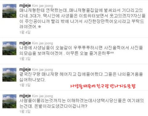 그래서 재중이와 창민이가 화냈더니 그 사생들이 캠코더(카메라)를 집어던지며 욕을 함.