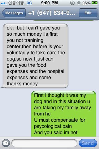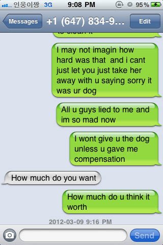 그러자 이뇬은 얼마를 원하냐고 물어봣고 나는 솔직히 보상보다도 강아지를 계속데리고 있는것을 원햇기에 선뜻 대답을 못하겠는거임
