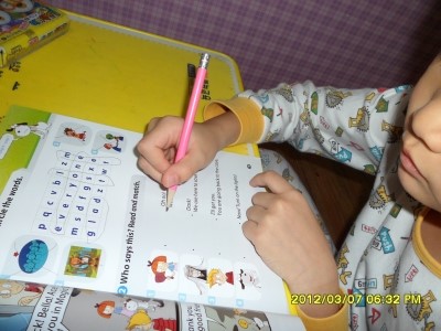 읽기가 잔신 없는 아들녀석은 워크북을 불어본다 척척