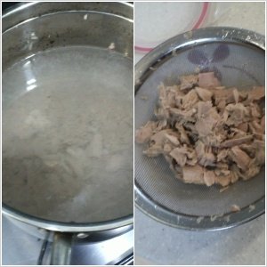 참치는 기름 기가 많으니깐 한번 데쳐주세요!!