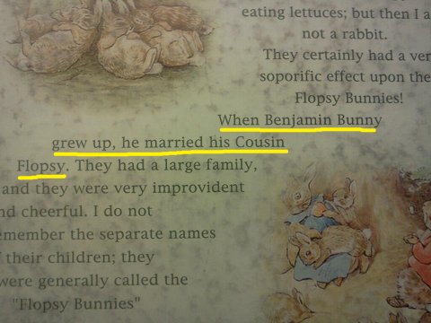 해석) 밴자민 토낀는 나중에 커서 사촌인 플롭시 토끼랑 결혼을 했읍니다.