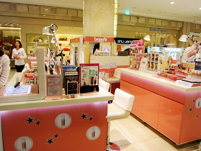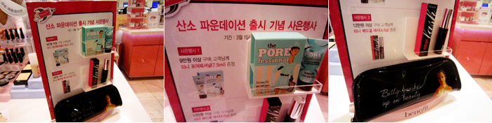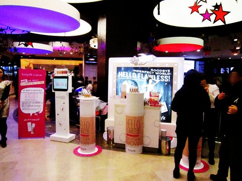 저는 미리 화장품 테스트를 받았던 지라 자리 잡고 행사 구경을 하다 (산소 파운데이션 정품을 받아가는 사람이 누구인지 궁금했었거든요) 산소 파운데이션을 사지 않으면 안 되겠다는 마음이 들어서 베네피트 매장으로 이동했어요.