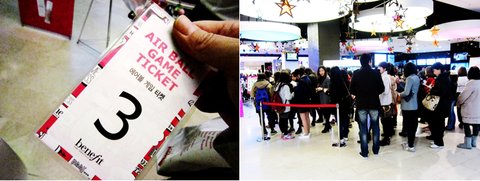 솔직히 이런 이벤트 추첨은 선물 받는 사람만 재미있는 거라 별로 내키지 않았었는데 베네피트는 이렇게 꽝이 없는 100% 당첨 에어볼 게임을 준비했더라구요. 당첨된다는 보장이 있으니 저도 이 번에는 당당하게 번호표를 받았지요ㅎㅎ