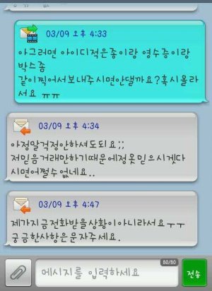거기다가 택배 보낸다고 했으면서 일주일째.. 택배도 안오고 연락을 해보면 문자도 다씹고