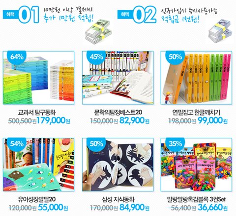 매월 공동구매로 삼성출판사의 전집,단행본을 최대 64%까지 할인받는
