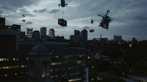 마지막에 헬기가 컨테이너박스를 바닥에 내려놓고 그 문을 열어보니