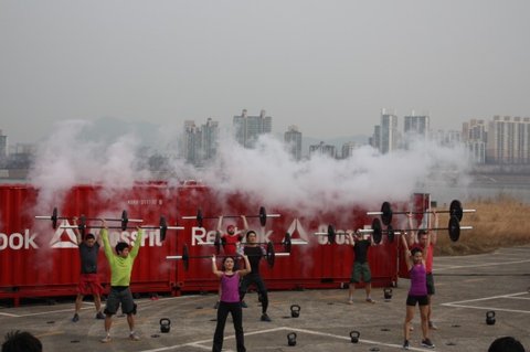 후에 전문 크로스피터들이 크로스핏 시범을 보였는데