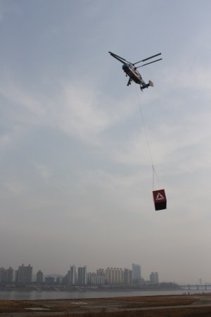 컨테이너를 싣고 온 헬기가 컨테이너를 내려놓았는데