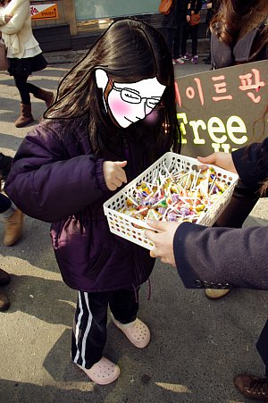 "오세요~어서요! 사탕줘요!"라고 외치지도