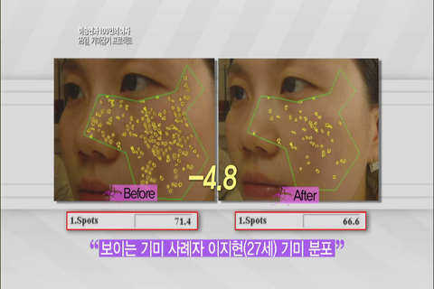 그 결과 기미 분포가 놀랍게 줄어든 것을