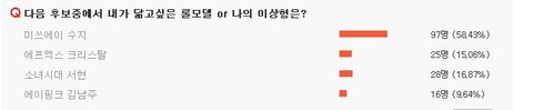 - Q 여자아이돌 16강 진출자는 투표결과 미쓰에이 수지, 소녀시대 서현입니다