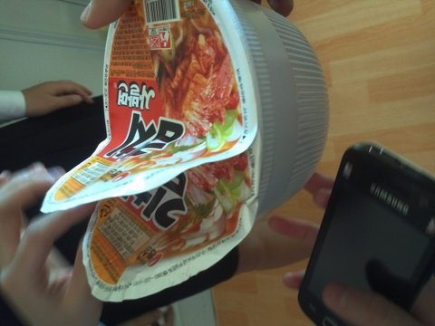 그래서 친구들에게 돈을 쥐어주고 컵라면을 사오라고햇는데