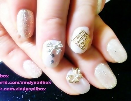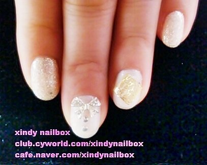 진주펄 컬러 위에 리본 파츠와 엔틱 파츠로 포인트 하였습니다.