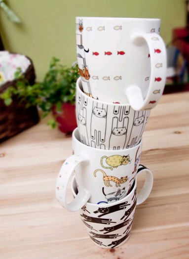 냥이일러스트가 예쁘게 그려져있는 머그컵들이에용