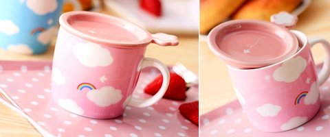 예쁜색상에 구름이 그려져있는 뚜껑머그컵이랍니다^^ 무지개가 포인트인듯