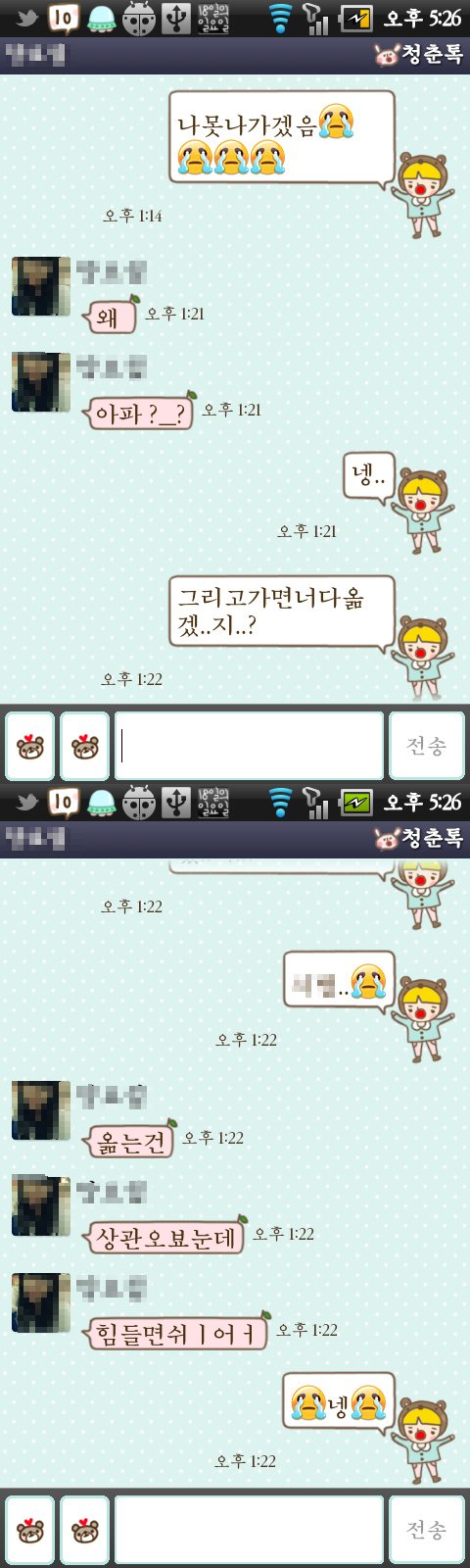 그래서 내 친구한데 아프다고 구원의 카톡을 보냄ㅠㅠㅠㅠㅠㅠㅠㅠ