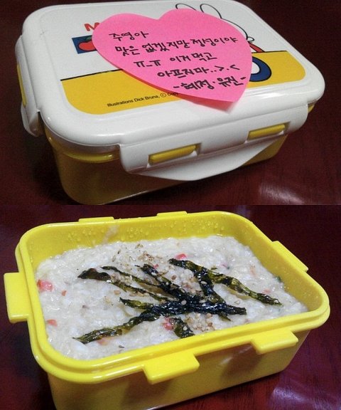 자세히 보니까 포스트잇이 붙어있는 작은 도시락통ㅠㅠㅠㅠㅠㅠ