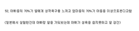 52. 아빠들의 70%가 딸에게 성적욕구를 느끼고 엄마들의 70%가 아들을 이성으로본다고함