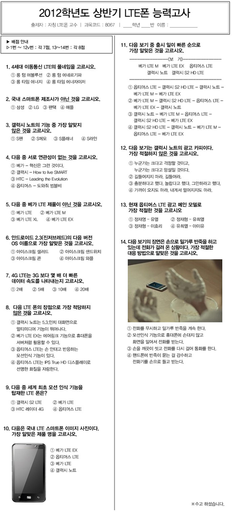 2012년도 상반기 LTE 스마트폰 능력고사ㅋㅋ
