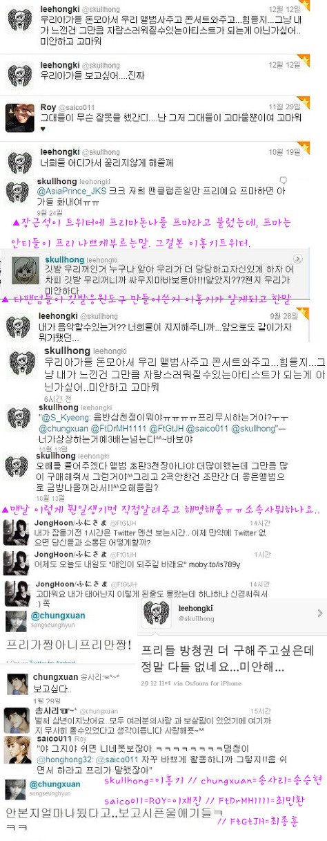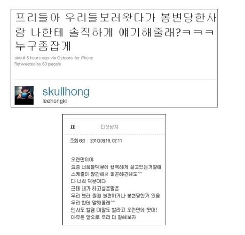이홍기 화남 진짜 화남 공카 트위터 미니홈피까지 다 똑같은 내용으로 프리들한테 올림