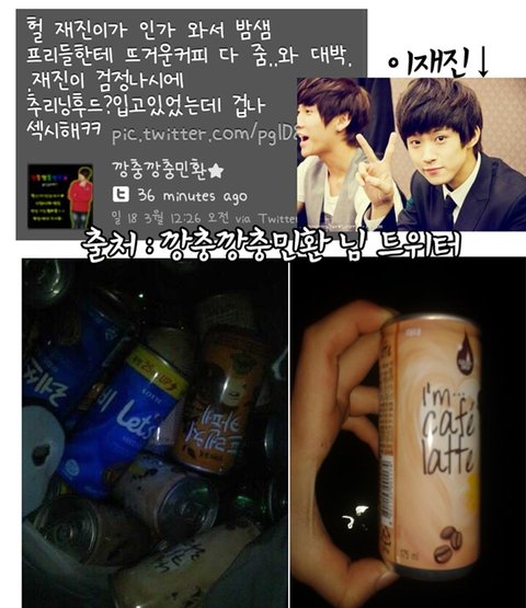이재진이 음중 사녹때 프리들한테 김밥이랑 주스 쏨! 인가 컴백때 빵이랑 우유 쏨!
