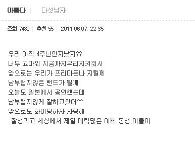 정신없이 바빴을텐데 끝까지 4주년 같이 챙겨야 된다고 12시 지나기전에 공카에 편지올림
