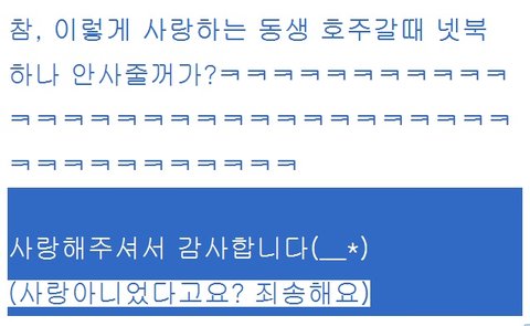 참, 이렇게 사랑하는 동생 호주갈때 넷북 하나 안사줄꺼가?ㅋㅋㅋㅋㅋㅋㅋㅋㅋㅋㅋㅋㅋㅋㅋㅋㅋㅋㅋㅋㅋㅋㅋㅋㅋㅋㅋㅋㅋㅋㅋㅋㅋㅋㅋㅋㅋㅋㅋㅋㅋ