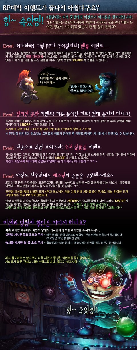 LOL 하는 친구들 .. 플포 LOL 사이트 에서 이벤트 진행중이야. 한번씩 와서 이벤트 참여도 하고