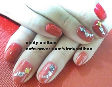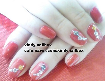 펄이 없는 빨강을 두 번 바르고 빨강 오팔펄을 깔아주었는데요.
