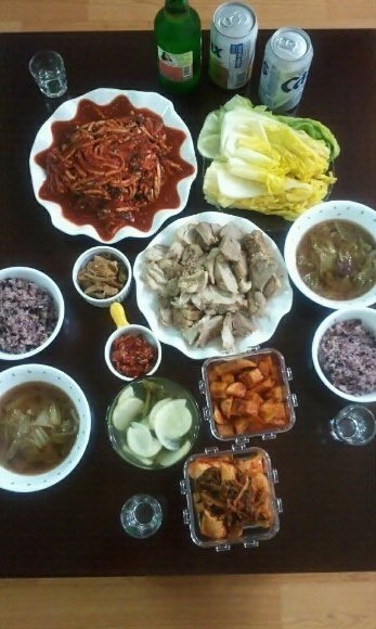 친정엄마가 김장했다고 갖고 오셔서 보쌈 삶고, 한잔 했던 날