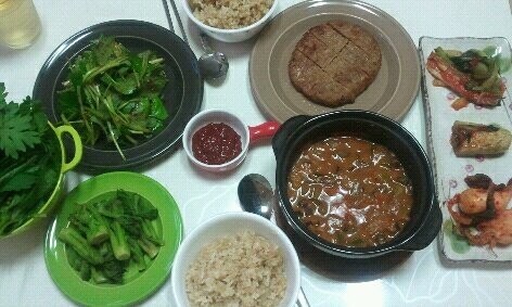 고기,된장국 평범한 저녁밥상