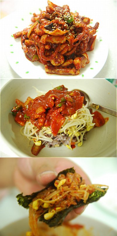 매운낙지볶음과 콩나물무침으로 쓱쓱 비벼 김에 싸먹는 맛이란~~!^^